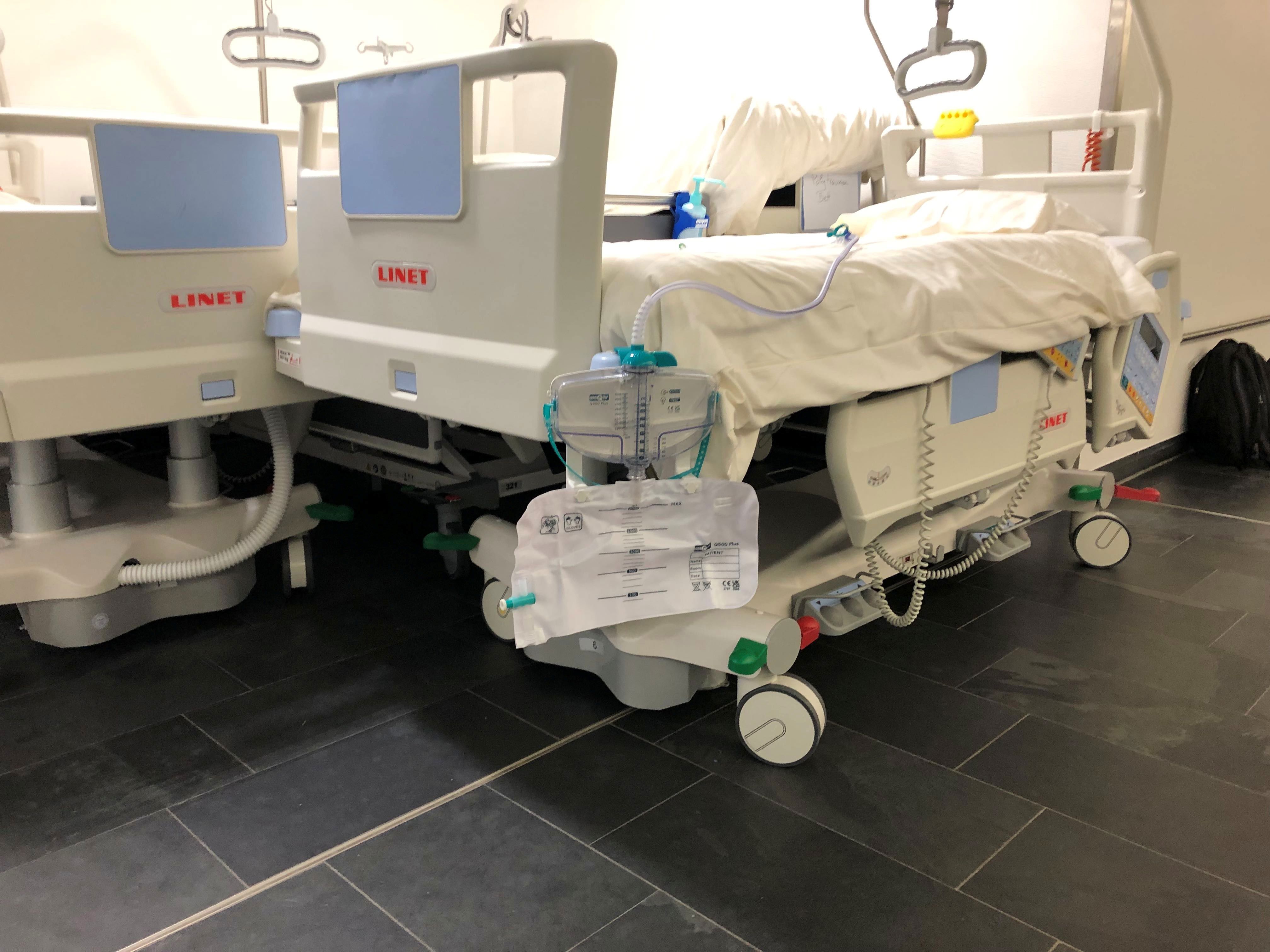 The top-mounted urine measuring system is designed to prevent infections and provide accurate urine measurement for all patients, during transportation and for various bed types.