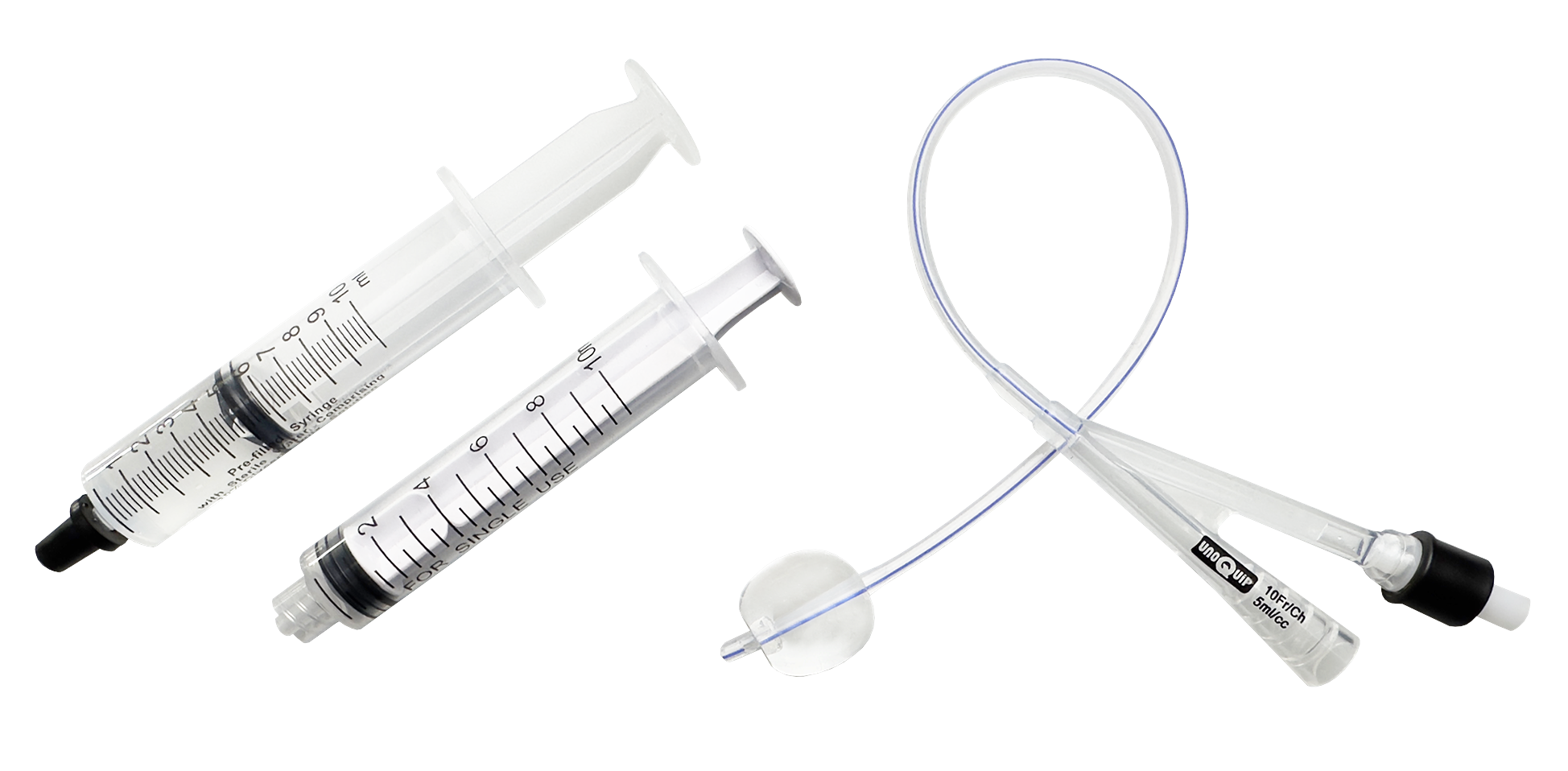 Designed for up to 90 days of indwelling use, the catheters ensure reliable performance for long-term urinary management. Each pack includes a prefilled syringe (10% aqueous glycerine solution) plus one empty syringe, and peel-off patient labels with Ref-codes and lot information for traceability and documentation.
