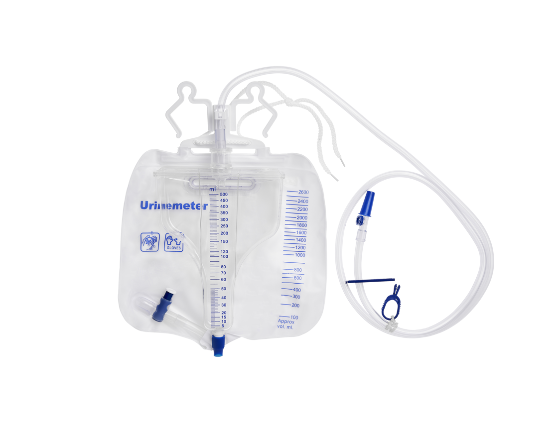 25001180 | Q500 urine meter, 1.1m tube, 2.6L bag, integrated hanger, cord, needle-free sample port, T-Tap outlet |